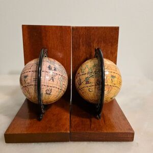 Globe World Old Map Wooden Base Vintage Bookends Spinning