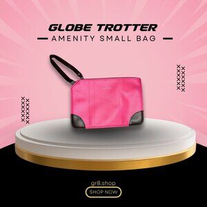 Globe-Trotter Pink Leather Small Amenity Bag With Black Handle & Corners Blue Pa