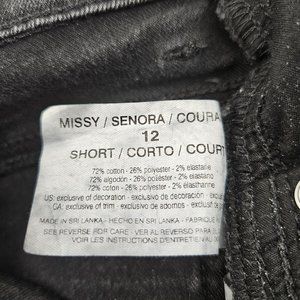 Classic black jeans by Gloria Vanderbuilt in size 12, designed for a perfect fit. The Amanda Missy short black denim straight leg jeans offer a timeless look and comfortable feel.