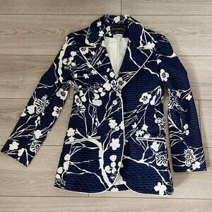Glorgini Blazer Jacket Women's Blue Pockets Padded Shoulder Two Button Closure