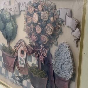 Gloria Eriksen Floral Topiary Art Dimensional Framed 3D Vintage 1997