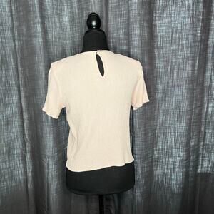 Gloria Lance 80’s pink textured short sleeve top. Excellent condition, round neckline, single button keyhole closure in back. Padded shoulders. Size and fabric tag have been removed. No rips, tears or stains. Approximate measurements pit to pit 17”, shoulder to hem 20”. Size small.