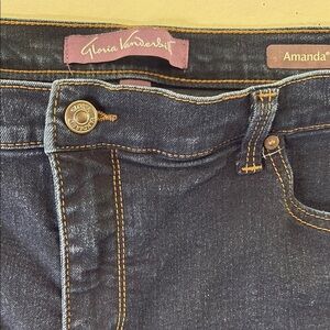 Experience the perfect blend of style and comfort with Gloria Vanderbilt's Amanda style blue jeans. Crafted from premium denim, these jeans offer a flattering fit and a classic dark wash. Ideal for any occasion, they are a versatile addition to your wardrobe.