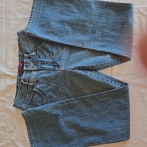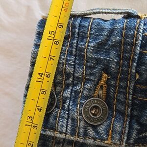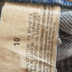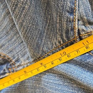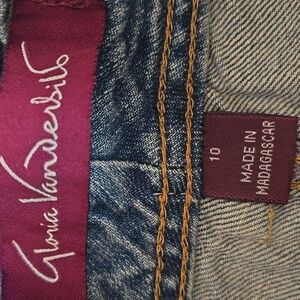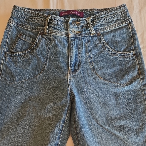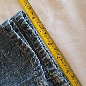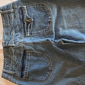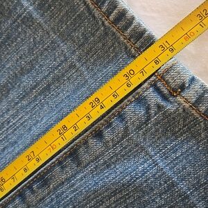 The first time I wore these, one of the buttons on the back flap came off, so I just removed the flap, as shown. These jeans fit me differently than other GV jeans, so please see photos for approximate measurements taken flat.