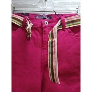 Gloria Vanderbilt AMANDA Denim Capris Pink Fuchsia Belted Sz 8 NWT Stretch