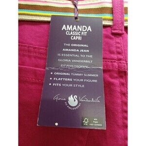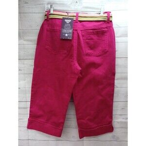 Gloria Vanderbilt AMANDA Denim Capris Pink Fuchsia Belted Sz 8 NWT Stretch.