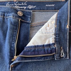 Gloria Vanderbilt, All Around Slimming Effect, Amanda Denim Capris. Generation icon Amanda Capri. Ultra soft comfort stretch. Capri length. Classic rise. 1” side slit with button detail. 5 pocket style. Zip fly. Style DGVB4239. 63% cotton 24% polyester 12% viscose 1% elastane. Size 8 regular. See photos for measurements to ensure fit. NWT