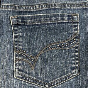 Gloria Vanderbilt Amanda Blue Jeans Size 8 Straight Leg 30.5" Inseam Stretch Embellished Pockets in good preowned condition. Fabric content tag is worn and I cannot get the exact fabric content.