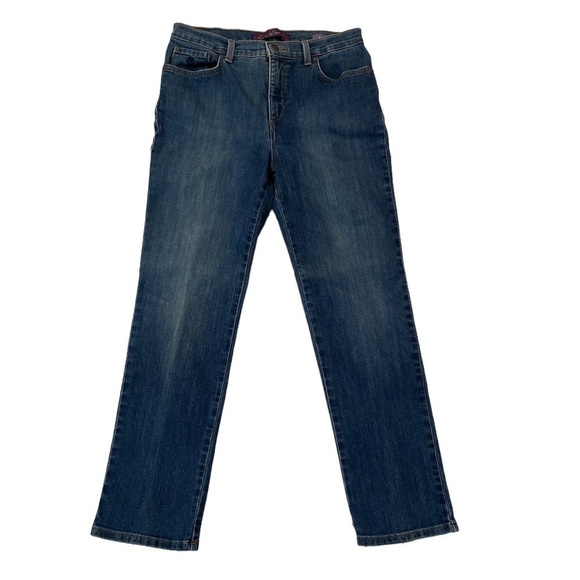 Gloria Vanderbilt Amanda Blue Jeans. Zipper button front closure. Five pocket style.