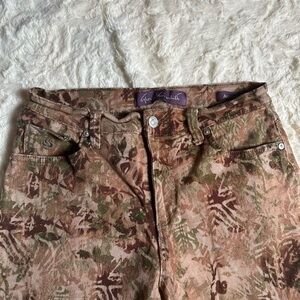 Gloria Vanderbilt Amanda Brown Floral Corduroy Pants Size 6S Straight Leg