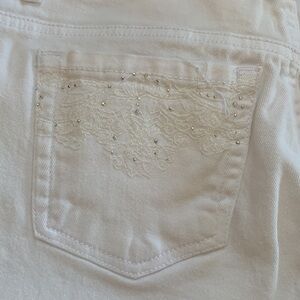 Gloria Vanderbilt Amanda Capri Hi Rise Jeans White Size 12. Excellent condition. Pretty embroidered detail with metallic accents in back pocket. Small 1” slit on sides.