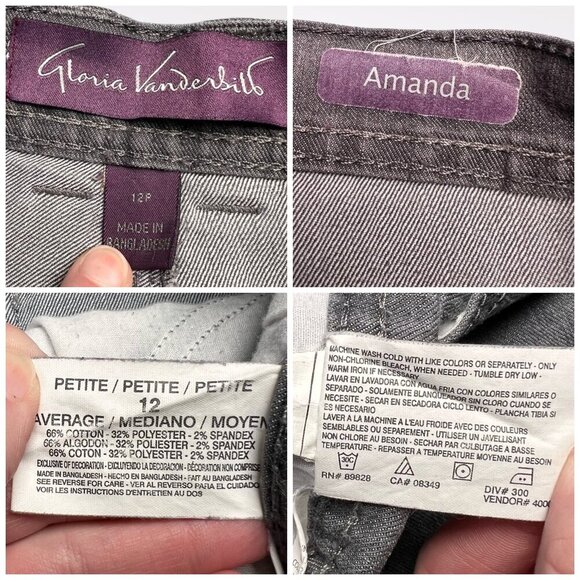 Gloria Vanderbilt Amanda Gray Jeans Straight Leg High Rise Size 12 Petite