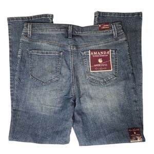 Gloria Vanderbilt Amanda jeans in size 14 Petite. These new with tags, high-rise, straight-leg jeans feature the signature Amanda fit, beloved for its flattering silhouette and comfortable stretch. Perfect for petite women seeking quality denim that fits perfectly.
