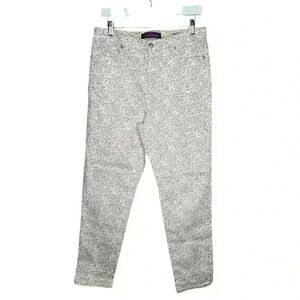 Elevate your denim game with these stylish Gloria Vanderbilt Amanda jeans. The high-rise waist and skinny fit make for a flattering combination, while the white cotton blend fabric with a light wash adds a touch of sophistication. The jeans feature a zip and button closure, along with pockets for added convenience.