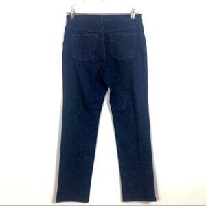 Gloria Vanderbilt Amanda indigo jeans with subtle design and coppery tint. Straight leg and high waist. Jeans have stretch: 78% cotton, 22% polyester, and 2% elastane.