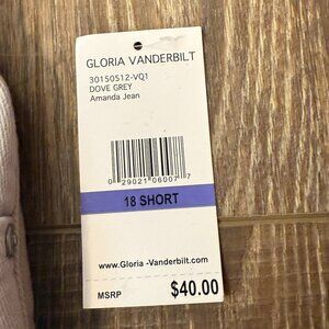 Gloria Vanderbilt Amanda Classic Rise Jeans. Color – Dove Grey. Size 18S. Inseam 28”. 12” rise. 98% cotton, 2% Spandex. 3 front pockets and 2 back pockets. Tapered Leg, Classic Rise. New with tags. Please see photos.