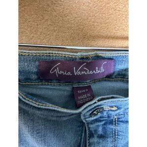 Keywords: Gloria Vanderbilt jeans, women's denim, 18W jeans, short inseam jeans, light wash jeans, straight leg jeans, classic fit jeans, everyday