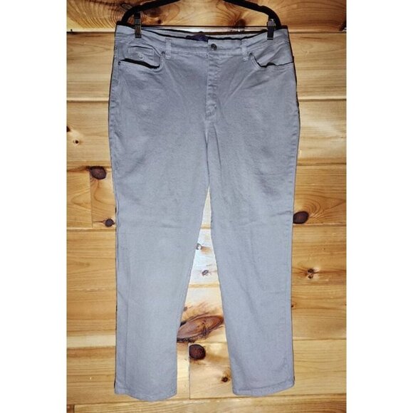 The Gloria Vanderbilt Amanda Jeans in Tan Plus Size 16 are made from a blend of 98% cotton and 2% elastane, offering a stretchy and comfortable fit. These high-rise jeans feature a straight leg style with a 5-pocket design and a solid brown color, making them versatile for all seasons. With a zip closure and button accents, these stylish jeans are machine washable and perfect for everyday wear. The plus size 16 waist and 29 inseam ensure a comfortable and flattering fit for women looking for a classic denim staple.spot on leg
