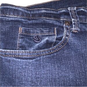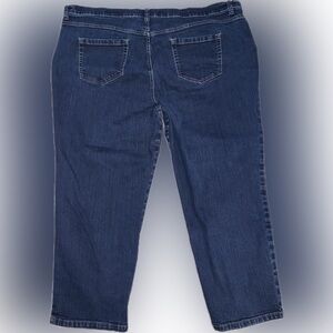 Great pair of Gloria Vanderbilt Amanda jeans. Size 24W Short. Dark wash and traditional 5 pocket design. Small logo embroidered on the coin pocket.