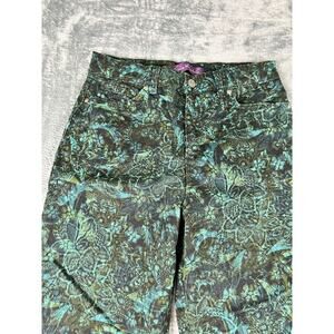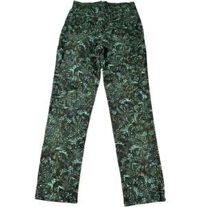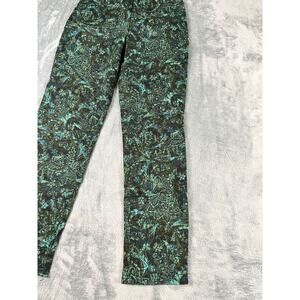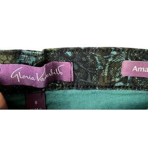 Gloria Vanderbilt Amanda Teal Green Abstract Print Tapered Jeans Size 8 Excellen