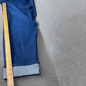 Waist = 18.5 inches laid flat, Top to bottom = 36 inches, Inseam = 24 inches. No visible flaws detected.