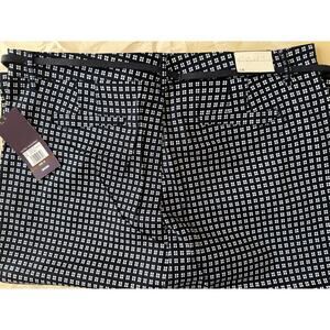 Gloria Vanderbilt Anita belted capri pants in a black and white print. These capris feature a belted waist, zip and button closure, and front pockets. The material is a blend of 98% cotton and 2% elastane. New with tags.