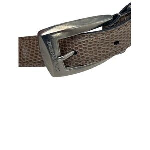 Gloria Vanderbilt Belt Embossed Tan Silver Tone Buckle Size 10