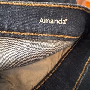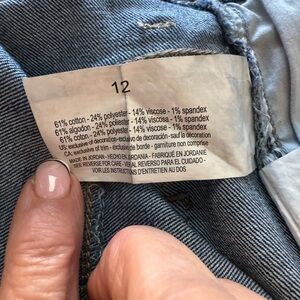 Through my research I get the impression these shorts have been cut from a new pair of Gloria Vanderbilt Amanda wide leg crop jeans. The tags are still attached.