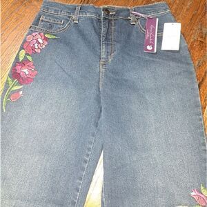 Gloria Vanderbilt Blue Skinny Jeans with Floral Embroidery