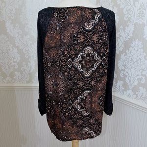 Gloria Vanderbilt Brown and Black Boho Top with Tassel Tie Size Medium