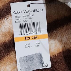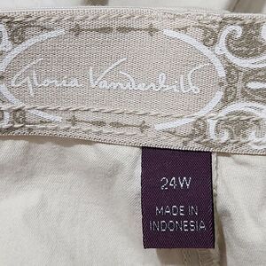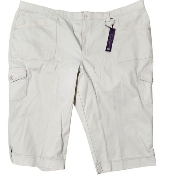 The product is a pair of Gloria Vanderbilt Capris women's shorts in size 24W, featuring a cream color with pockets.
