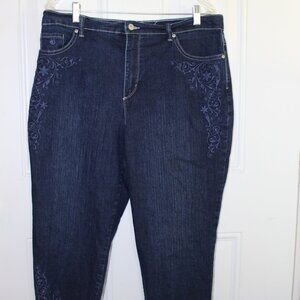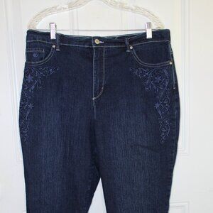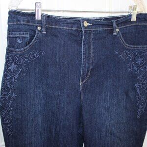 Gloria Vanderbilt Cargo Cropped Embroidered Capri Jeans Size 14 Denim Blue