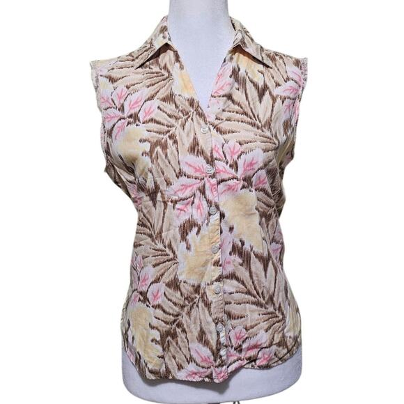 Gloria Vanderbilt Casual Floral Sleeveless Button Up Blouse Size Petite Med