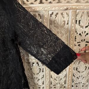 Gloria Vanderbilt Casuals Black Goth Geometric Sheer 3/4 Sleeve Button Up Top M