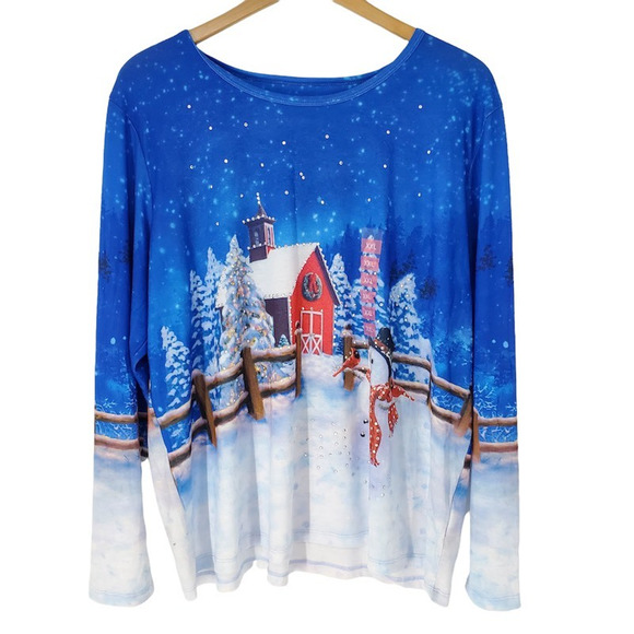 Gloria Vanderbilt Casuals Women Tabitha Shirt Snowy Scene Long Sleeve 2XL New