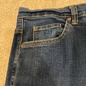 In great shape! Cute dark wash! Front and back pockets! Inseam measures 29.5 inches! Perfect for any occasion! Offers welcome!