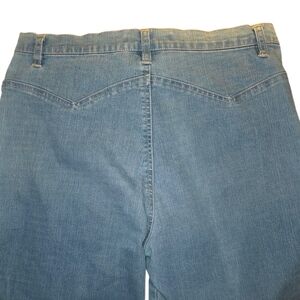 These stylish blue jeans from Gloria Vanderbilt feature a wide leg and design, enhanced with intricate floral embroidery along the legs. The light blue wash and decorative details create a unique blend of casual elegance, perfect for making a statement.