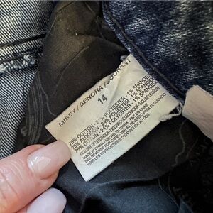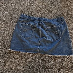 Gloria Vanderbilt Denim Jean Mini Skirt Distressed Hem Studded Pockets Size 14