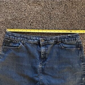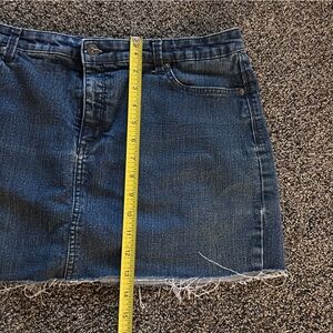 Gloria Vanderbilt Jean Denim Mini Skirt Distressed Hem Studded Pockets Size 14