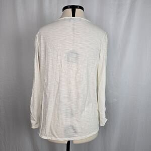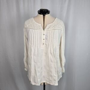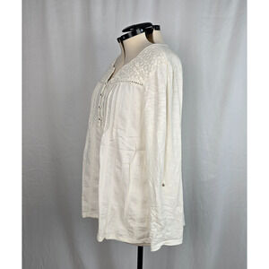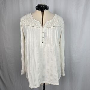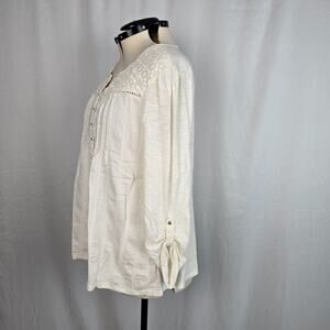 Gloria Vanderbilt Embroidered Blouse Women's XL Cream Off White Roll Tab Sleeve
