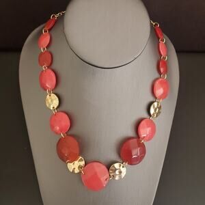 Gloria Vanderbilt Gold Tone Necklace with Coral Acrylic Discs