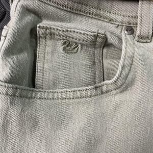 Features: Straight leg; classic 5-pocket layout; zip fly with button closure; belt loops