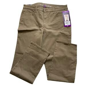 Gloria Vanderbilt All Around Slimming Effect Pants Womens 14 Mid Rise Rail Straight Stretch Khaki