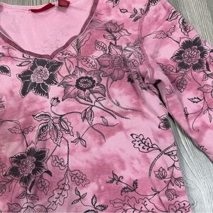 Gloria Vanderbilt Mauve Floral Velvet Trim 3/4 Sleeve V Neck Top Y2K Size S