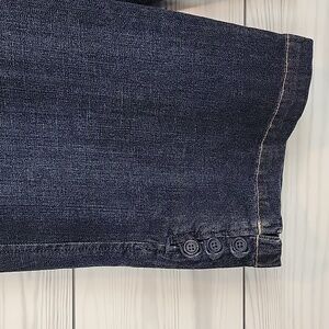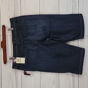 Stylish dark denim Bermuda shorts by Gloria Vanderbilt with a high-rise, front slant pockets, and back patch pockets. NWT