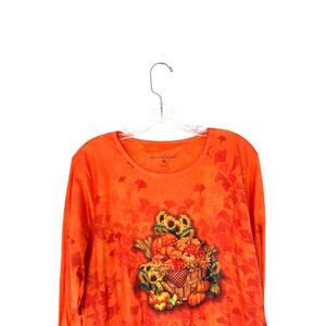 Gloria Vanderbilt Orange Crewneck Fall Pumpkin Long Sleeve Casual Shirt Size XL