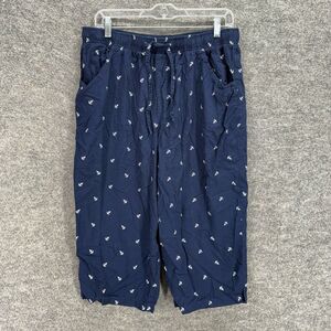 Gloria Vanderbilt Pajama Pants Women L Large Blue Anchor Print Cotton Drawstring