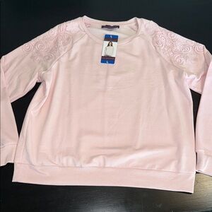 Gloria Vanderbilt Pink lace accented Sweatshirt NWT