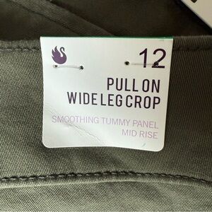 Gloria Vanderbilt Pull on wide leg crop size 12 Olive green tummy Smoothing