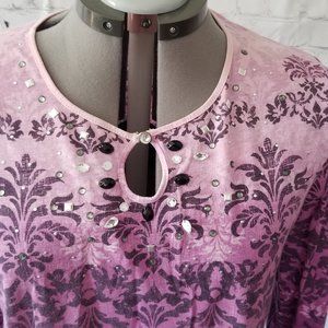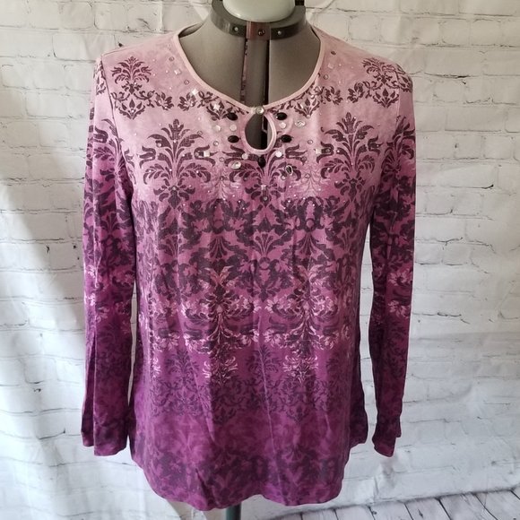 Gloria Vanderbilt Purple Hombre Embellished Top Lg